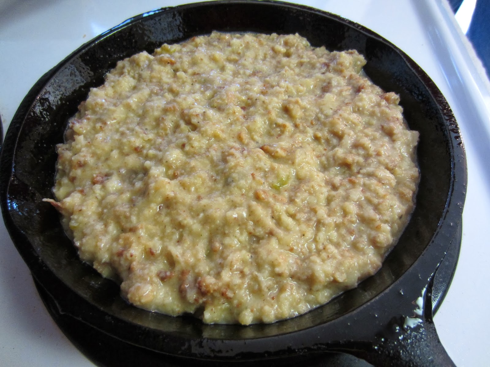 Since it was just the two of us, I cooked a small amount in my 7.5 inch iron skillet that I sprayed with cooking spray.