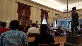 The East and West Wings to house the new Senate and House Chambers were added in 1906. (I didn't get a picture of the Senate Chambers because the seniors went in first and immediately started a lesson the teacher had planned for them.) We did get to go into the House Chambers when another class finished their lesson which was very exciting.