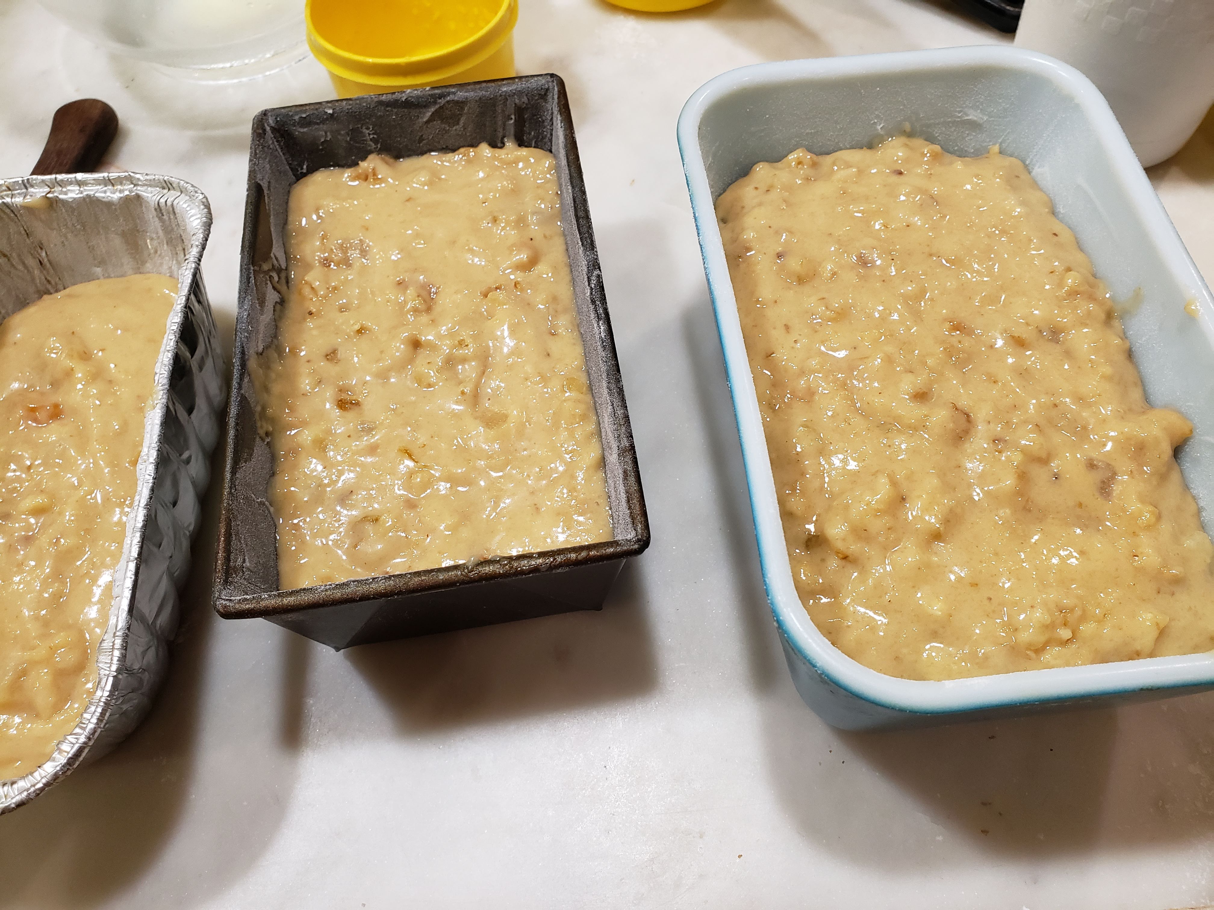 Preheat oven to 350 degrees F. Grease and flour a 9 x 5 - inch loaf pan and set it aside. I made two smaller loaves and then had a enough batter left to make a smaller one for us so I could taste it.